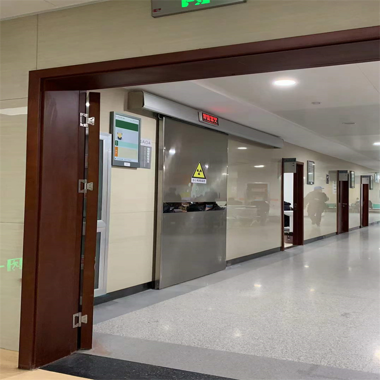 固定式探伤防护铅门主要用于固定探伤室内,对物体内部缺陷进行X射线检查。固定式探伤防护铅门又分为两种:一种是探伤室进出门,其大小可根据探伤室的大小决定,其防护厚度应与同侧墙壁的铅当量等同;另一种是探伤人员进出的工作门,多与控制室相连,通常在工作门与探伤室之间设置L型或Z型的迷路墙。